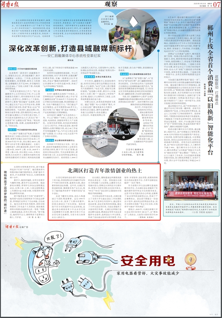 据统计,2025年,北湖区新增大学生创业项目库项目180余个,在“湘易办”上线农业、文旅等方面的项目约20个。