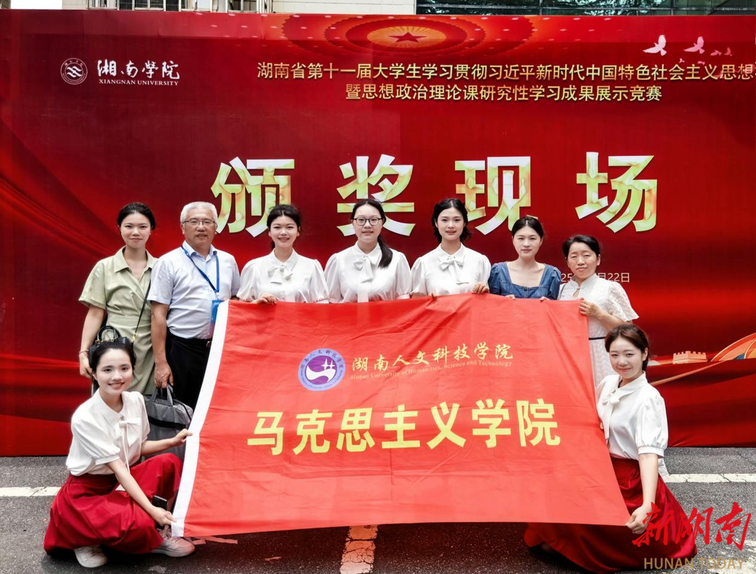 湖南日报·新湖南客户端5月22日讯(通讯员 黄如 常可新 李婉溶)5月22日,湖南省第十一届大学生学习贯彻习近平新时代中国特色社会主义思想暨思想政治理论课研究性学习成果展示竞赛决赛在湘南学院落下帷幕。湖南人文科技学院学子凭借扎实的学术功底和出色的团队协作,在竞赛中脱颖而出,荣获省赛一等奖1项、二等奖2项、三等奖1项,充分展现了该校在思想政治理论课改革创新与思想政治教育专业人才培养方面的显著成效。