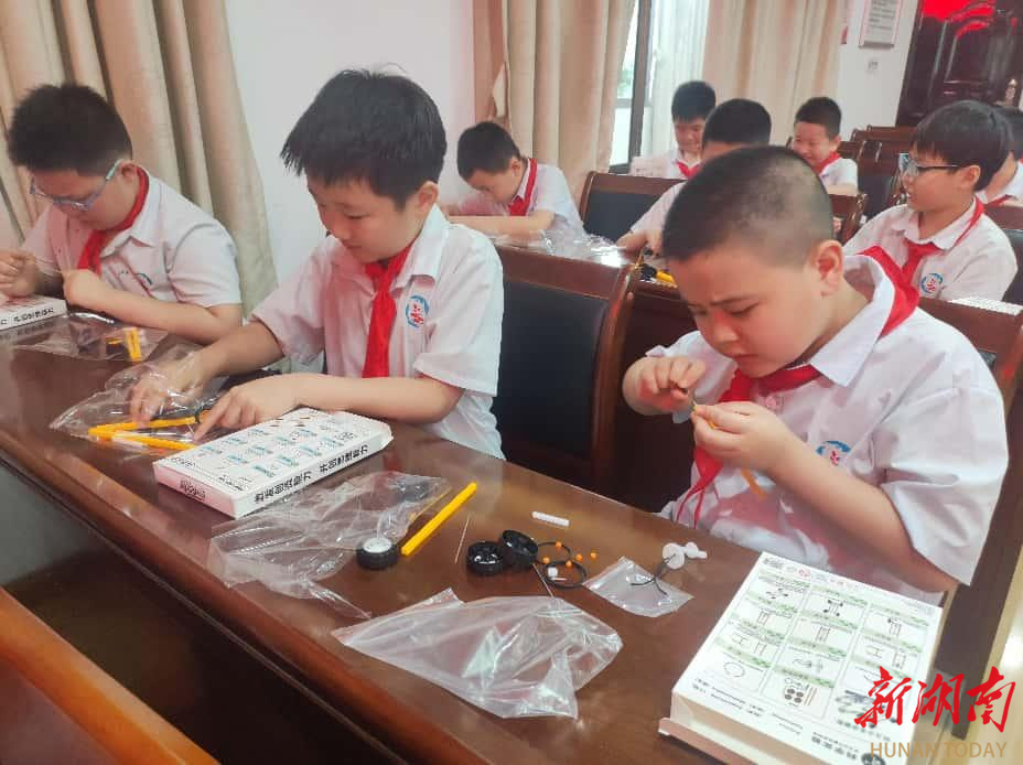 “哇,我的机器人可以向后转。”“我的机器人可以敬礼呢。”东阳渡中心学校学生们互相比较手中刚组装好的机器人,脸上写满自豪。