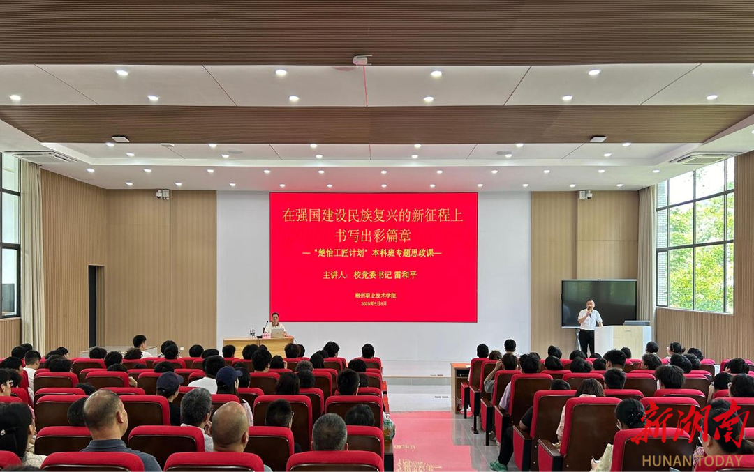 新湖南客户端5月22日讯(通讯员 周巍 谢美婷 郭晓伟)在今年5月职教活动周举办之际,郴州职业技术学院党委书记雷和平走进“楚怡本科班”,以“在强国建设民族复兴的新征程上书写出彩篇章”为主题,为青年的在校学子讲授了一堂深刻又生动的专题思政课。