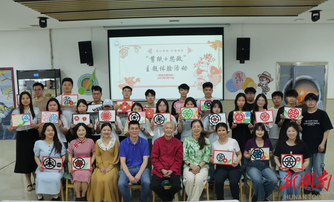 湖南日报·新湖南客户端5月22日讯(通讯员 曾春霞 江梓轩)近日,湖南化工职业技术学院机械工程学院上演一场非遗技艺与思政教育的创新交融。学院特邀“中华著名剪纸艺术家”李映明、省级非遗项目《株洲剪纸》市级代表性传承人李伟静,携手校马克思主义学院教师黄慧,以“剪纸映匠心・思政传薪火”为主题,于观澜堂四楼青春畅想沙龙开启“非遗剪纸+思政”主题体验活动。校学工部部长陈宇、现代信息工程学院党总支副书记刘三婷、学院党总支副书记曾春霞等近30名师生,共同见证传统艺术与时代精神的深度碰撞。