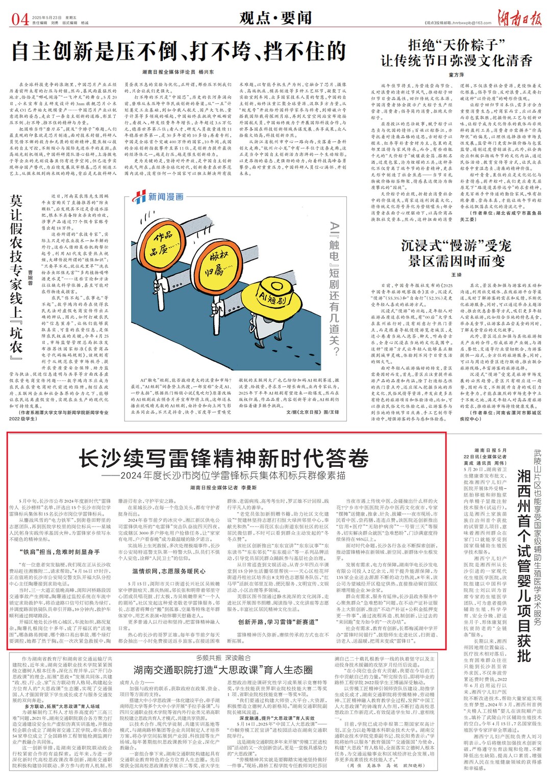 5月中旬,长沙市公布2024年度新时代“雷锋传人 长沙榜样”名单,评选出15个长沙市岗位学雷锋标兵集体和15名长沙市岗位学雷锋标兵。