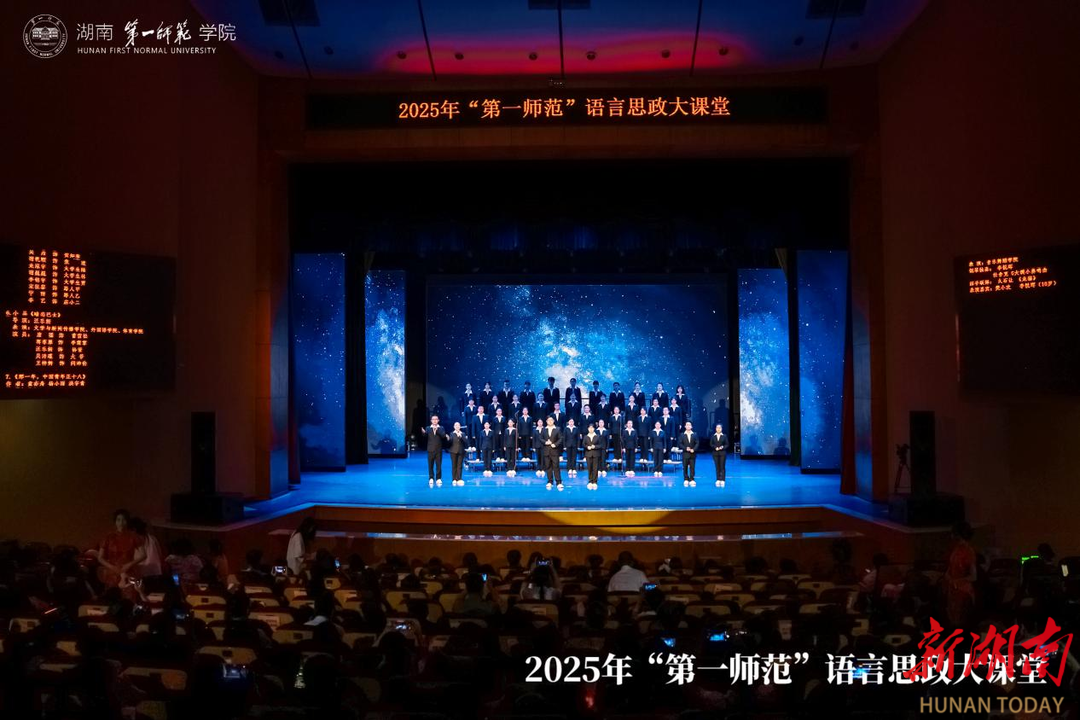 湖南日报·新湖南客户端5月23日讯(通讯员 谭锦洪 唐振梁 范利 记者 蔡矜宜)百年师范,弦歌不绝。5月21日晚,“第一师范”语言思政大课堂在湖南第一师范学院田汉剧场举行,1200余名师生欢聚一堂,共赴这场视听、思想与精神交织的盛宴。