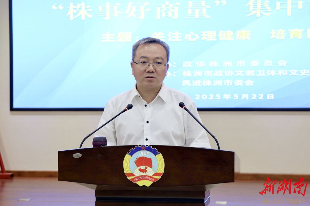 湖南日报·新湖南客户端5月23日讯(通讯员 郭青燕)如今,青少年在学业压力、家庭矛盾或突发事件等因素冲击下,极易出现“心灵感冒”。如何守护好孩子的心理健康,照亮阳光少年的成长之路?5月22日,株洲市政协举行2025年首场“株事好商量”集中协商议事活动,聚焦“关注心理健康,培育阳光少年”主题,剖析问题、提出建议、共商良策。株洲市政协主席聂方红出席并讲话。