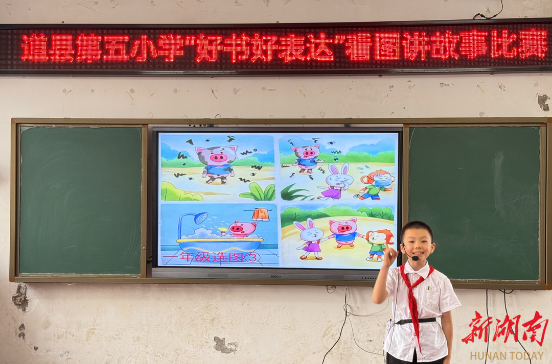 科教新报·新湖南客户端讯(通讯员 蒋正争 熊雪楠 周姿杏)5月21日,道县第五小学开展“好书好表达”看图讲故事比赛,该校30余名一二年级学生化身”故事大王”,用童真的语言和天马行空的想象力,为现场师生带来了一场精彩的视听盛宴。