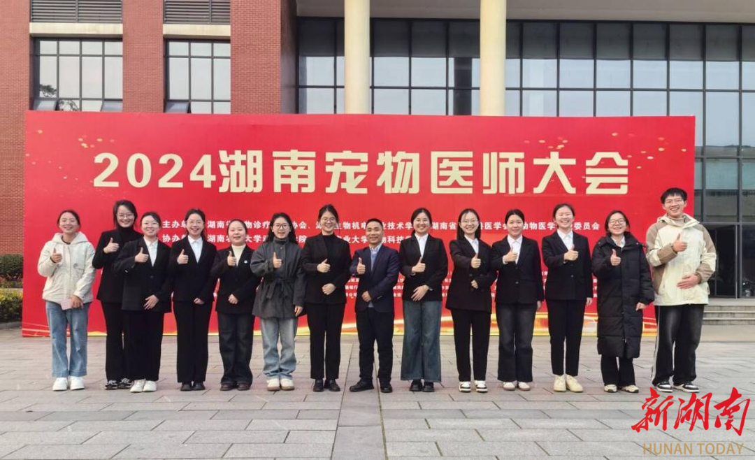 2024湖南宠物医师大会的团队合影,左起第7位为唐艺彤