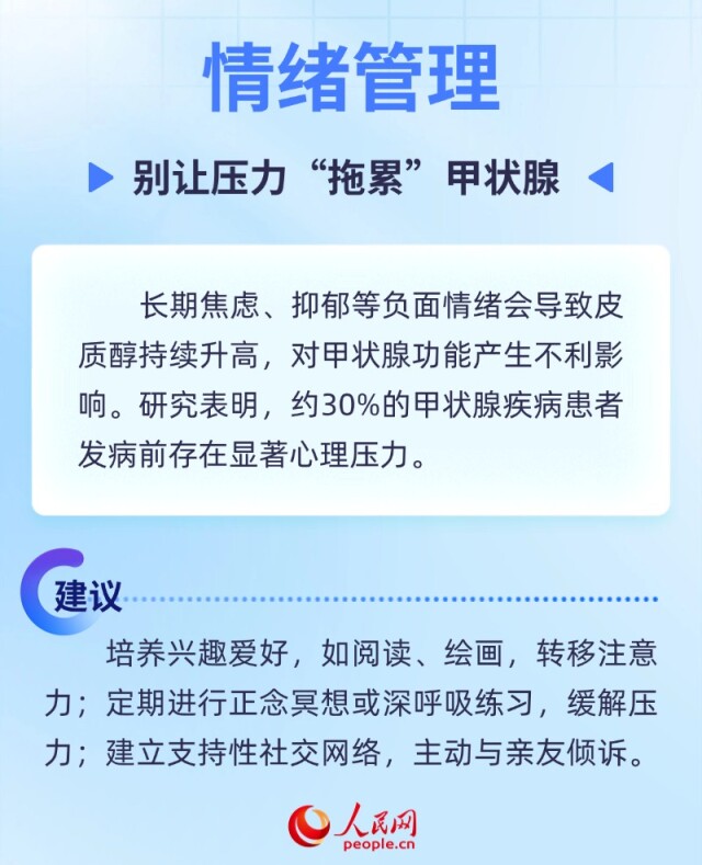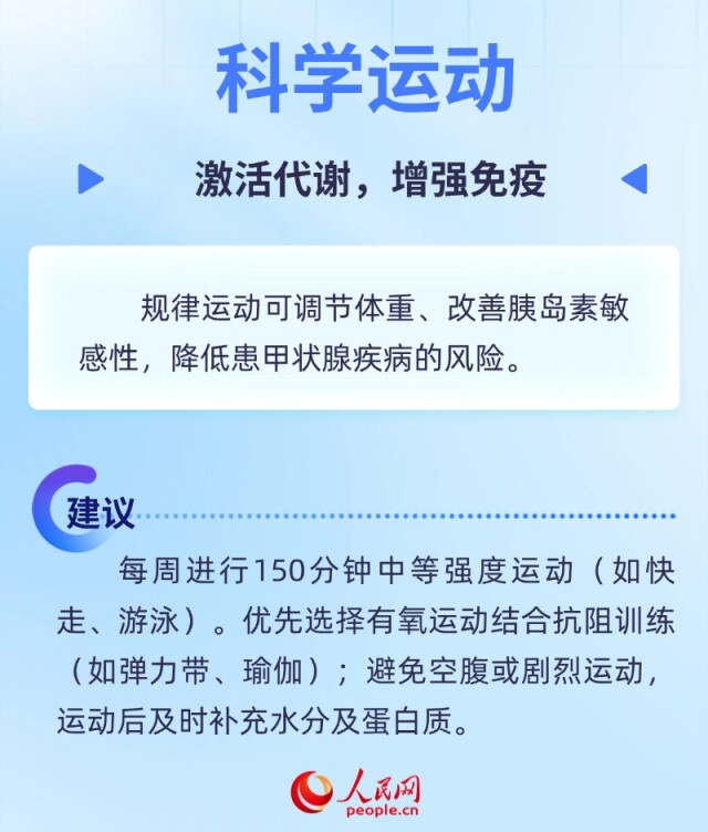 5月25日是世界甲状腺日。甲状腺作为人体重要的内分泌器官,其健康与年龄、遗传、环境等因素密切相关,但更易被忽视的是日常习惯的影响。如何通过科学的生活方式维护甲状腺功能?为此,人民网采访了西安交通大学第一附属医院保健办公室主任、内分泌科副研究员王悦。