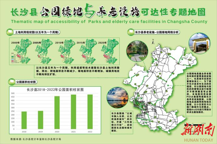 众多参赛作品中,获奖作品尤为亮眼。《星沙医脉・颐养经纬—— 基于设施可达性分析的浏水康养空间叙事》凭借GIS技术对养老设施布局进行深入剖析,将严谨的科学分析与浓厚的文化底蕴巧妙融合;《长沙县公交站点与养老设施可达性专题地图》聚焦城市公共服务,以数据整合与可视化设计的完美结合,展现专业深度。此外,《潇湘生态旅游图》《湖南省地形分析》等作品也以独特视角呈现湖南自然与人文特色。
