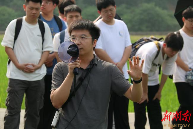 实习队伍首站抵达湖南省水稻研究中心试验田。阡陌交错间,指导老师详细讲解了杂交水稻育种理论、双季稻生长过程、土壤对水稻产量的影响以及水稻高产优质技术,让同学们对水稻种植有了更直观、深入的认识。