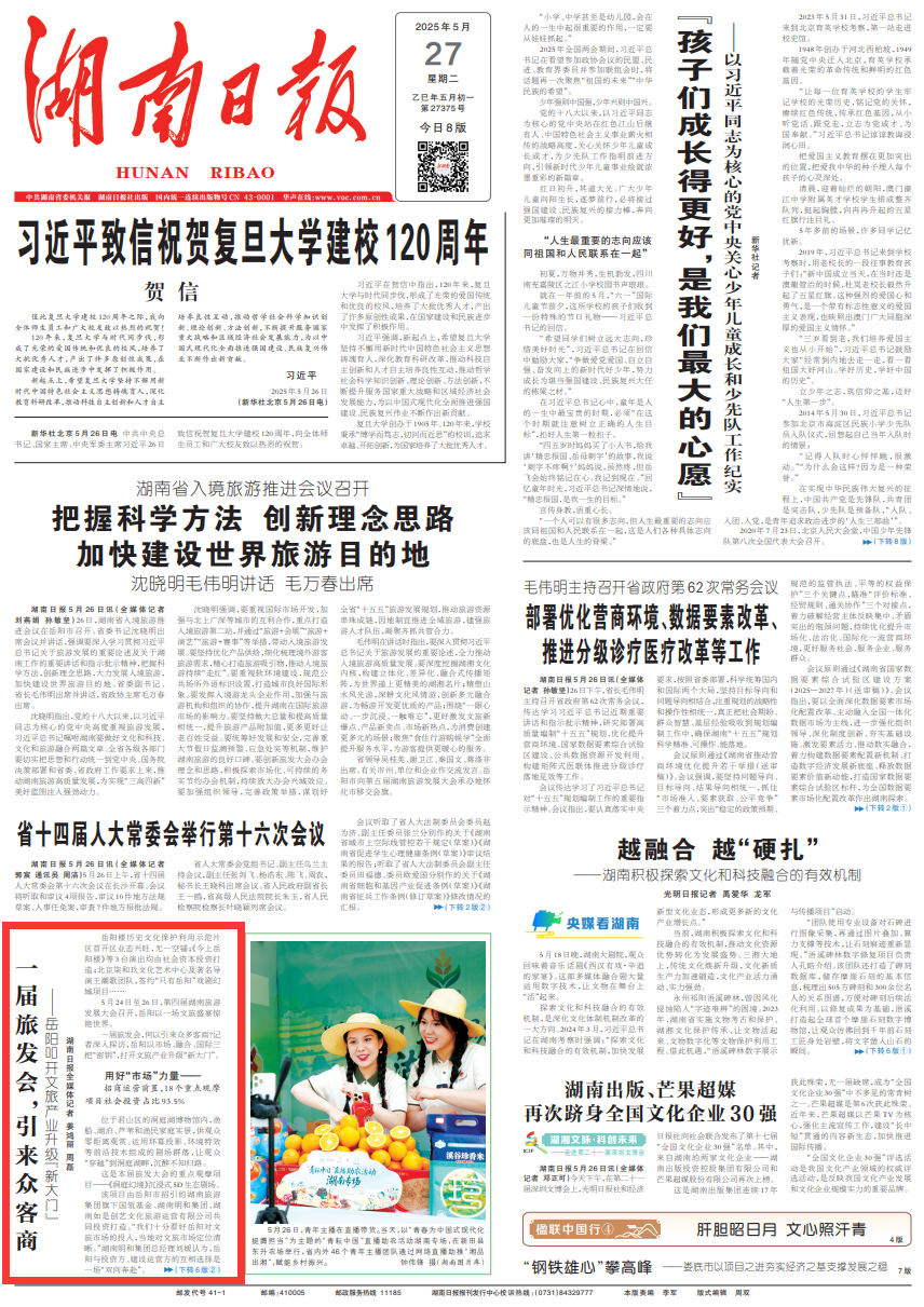 [来源:湖南日报 01版 2025-05-27]