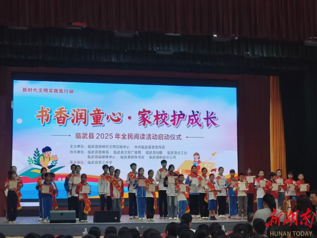 “阅读提高了我的写作能力,在阅读中,我学会了人生的道理,有了面对困难时的勇气……”在临武县2025年“书香润童心·家校护成长”全民阅读活动启动仪式上,“优秀阅读之星”雷晨慧同学真挚的分享打动了在场每一个人。