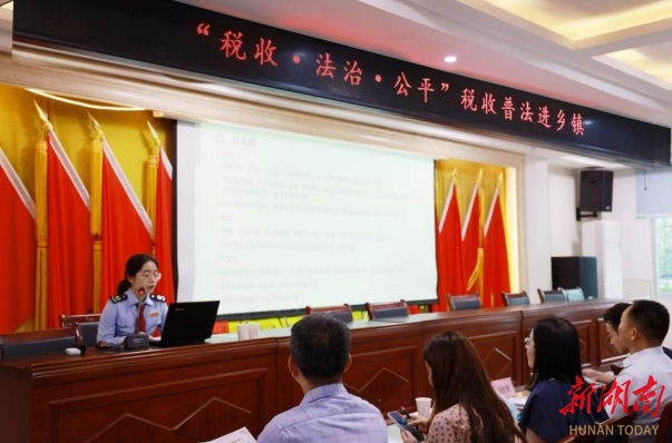 湖南日报·新湖南客户端5月29日讯(通讯员 杨瑶)为深入推进“民法典宣传月”活动,营造良好的税收法治环境。5月28日,荷塘区税务局联合区司法局、区财政局、湖南工业大学法学院等单位,在仙庾镇人民政府会议室举办“税收·法治·公平——税润乡村,振兴万家”主题普法活动。株洲市税务局党委委员、总会计师蒋学军,市税务局法制科、市司法局普法科、区司法局、区财政局、仙庾镇党委政府等部门领导出席,仙庾镇全体村经济合作社负责人及财务人员参加。
