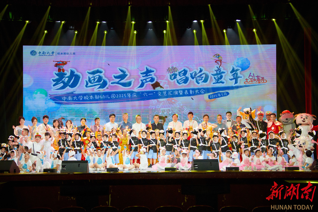 《大闹天宫》的金箍棒光影流转,《葫芦兄弟》的藤蔓仿佛爬满幕布,《黑猫警长》的警笛声唤起几代人的回忆……近日,中南大学校本部幼儿园“动画之声 唱响童年”庆“六一”文艺汇演暨表彰大会活动在麓南校区礼堂举办,萌娃们化身国漫世界的小主角,舞台下的掌声如浪潮般此起彼伏。