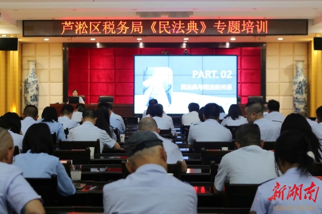 在芦淞区政府中心组会议室,一场税法普法课堂正如火如荼地进行……课堂上,税务干部紧扣实际工作需求,聚焦公职人员履职中的民事法律风险,系统梳理了相关民法典和税收优惠政策内容,来自全区27个机关单位的64名干部代表参训。