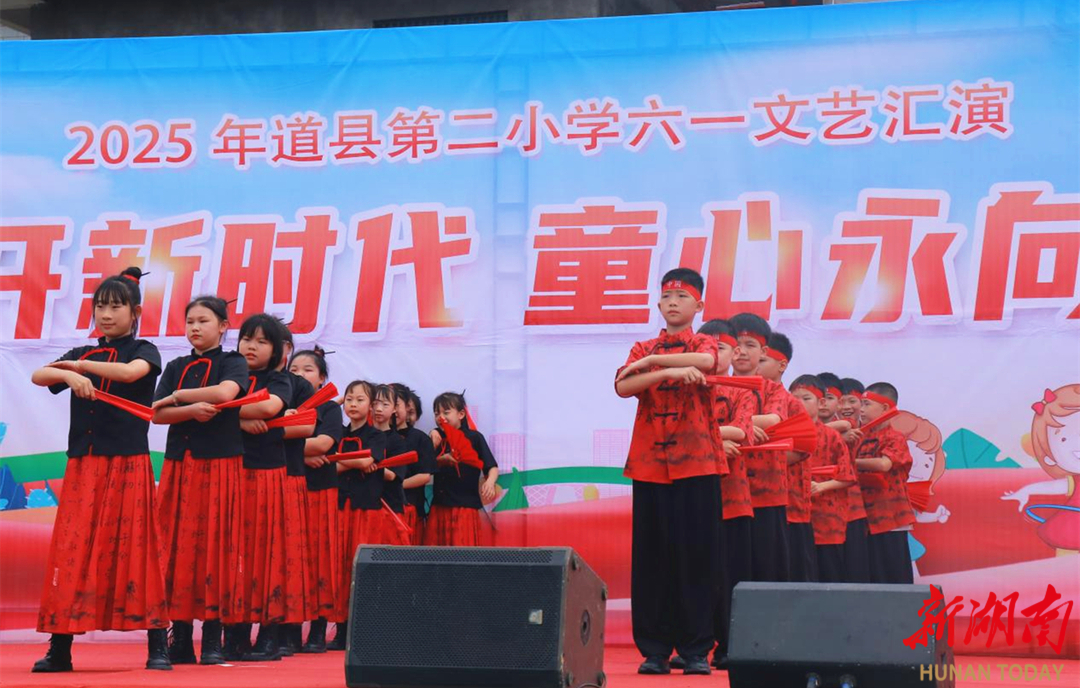 科教新报·新湖南客户端讯(通讯员 蒋正争 钟小丽 陈利坤 何彦霖)5月29日,道县第二小学举行“花开新时代,童心永向党”庆“六一”文艺汇演,学生们用欢快的歌舞庆祝自己的节日。