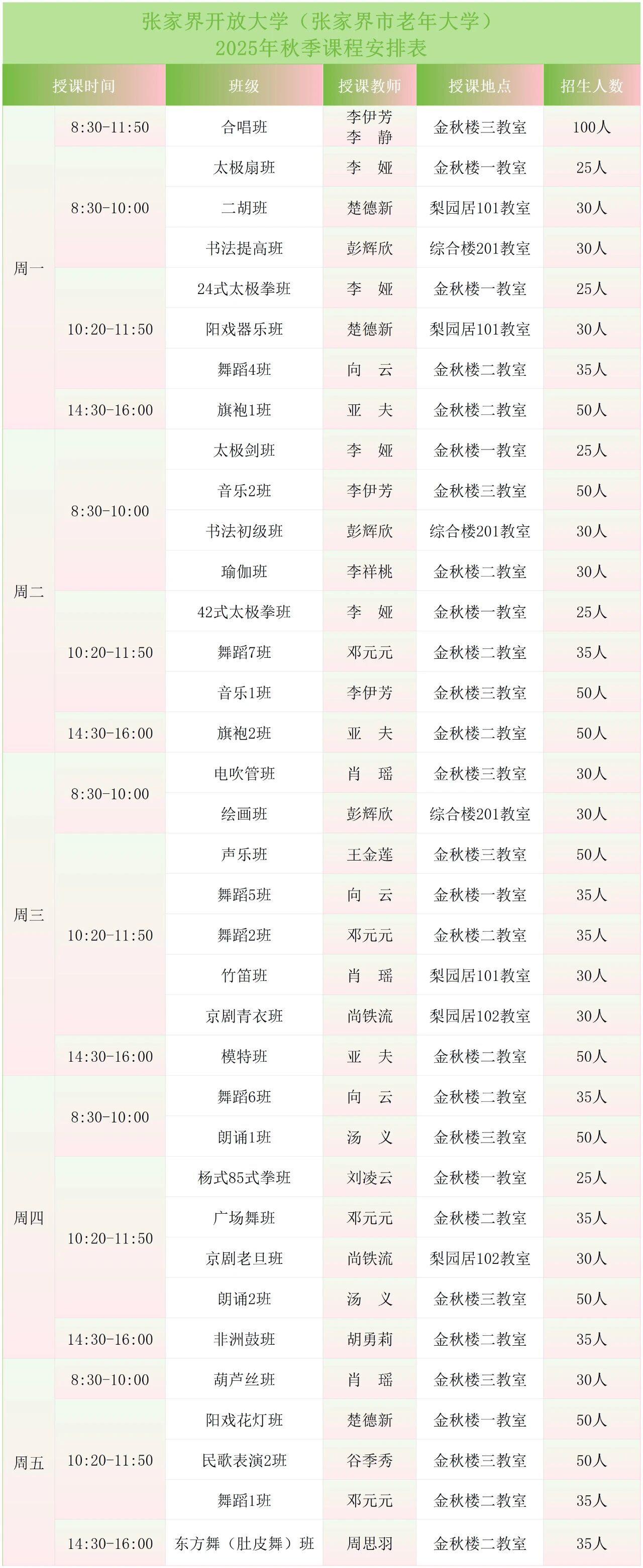 张家界开放大学(张家界市老年大学)2025年秋季招生简章