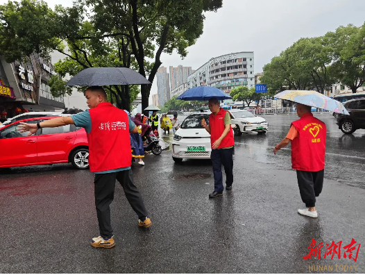“同学,注意台阶!”“家长您好,请前往规定的放学区域接孩子。”每周一早上、周二下午选修课结束时,长沙市开福区清水塘小学(北校区)校门口总能看到一群身着红马甲的身影。他们或牵起孩子的手走过斑马线,或弯腰帮低年级学生整理书包,或在人群中耐心维持秩序。他们不是老师,也不是保安,而是由热心社区工作人员组成的“社区志愿者护学队”。寒来暑往,他们的身影成为校园最美的风景线。