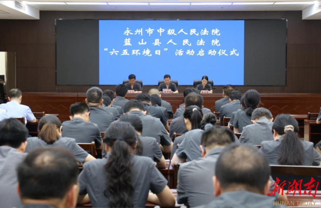 5月30日,永州中院、蓝山法院隆重举行“六五环境日”活动启动仪式,永州中院环境资源审判庭工作人员、蓝山法院全体干警,部分人大代表、政协委员、环保志愿者等社会各界人士参加。启动仪式上,集中观看了生态环保宣传视频《绿水青山“有我在”》,通报了近三年环境资源审判工作成效亮点及典型案例,并就充分发挥审判职能作用,携手共建生态保护法治屏障等作了动员。