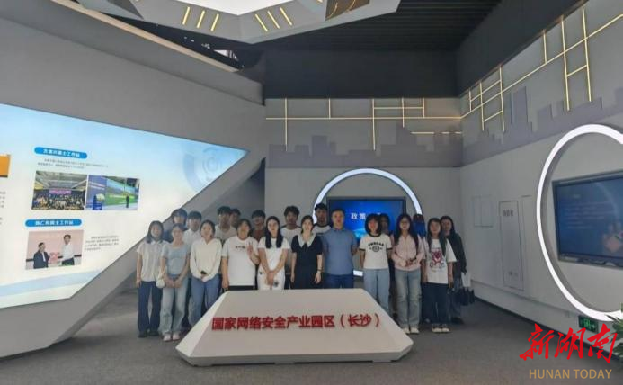 在园区工作人员引导下,师生一行参观了长沙市国链安全可靠计算机产业促进中心。工作人员详细介绍了中心在网络安全领域的前沿技术、创新成果及产业生态布局,学生们就技术应用场景、行业发展趋势等问题与工作人员深入互动,通过实地参观直观了解产业发展现状。