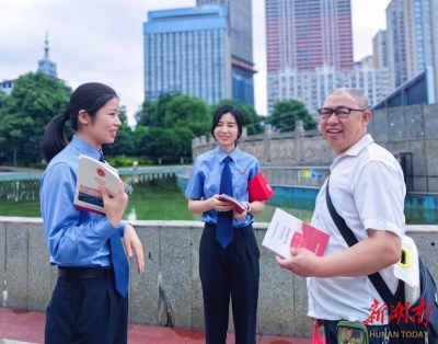 近日,郴州市北湖区人民检察院在五岭广场开展民法典暨《信访工作条例》普法宣传活动,让法治精神融入百姓生活,为群众送上丰盛的“法治套餐”。