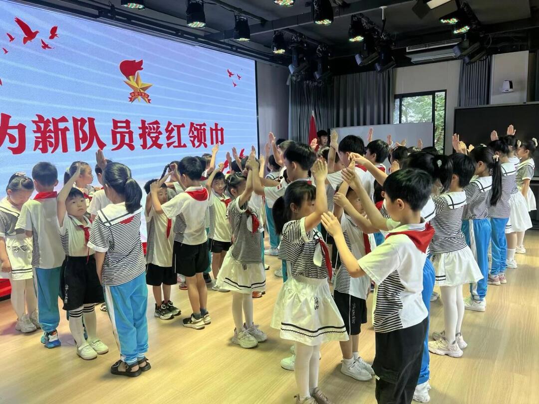 大队委宣读入队决定及新队员名单后,老队员代表为新队员佩戴红领巾。当鲜艳的红领巾系上胸前,新队员们庄严宣誓:“我热爱中国共产党,热爱祖国,热爱人民……”稚嫩的誓词中,凝聚着孩子们对少先队组织的承诺与担当。