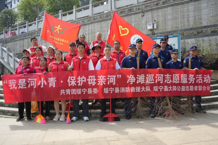 与此同时,共青团绥宁县委组织绥宁县消防救援大队、绥宁大邵公益的“河小青”净滩巡河活动也在如火如荼地进行。在花园阁国家湿地公园的核心区巫水画廊河畔,身着红马甲的“河小青”志愿者们手持清理钳、扫帚、垃圾袋等工具,沿着河岸仔细清理塑料袋、废纸屑、烟头、玻璃瓶以及垂钓废弃物等垃圾。志愿者们分工协作,不怕脏、不怕累,不放过任何一个卫生死角 。经过一上午的努力,河岸环境得到了明显改善,水域周边变得更加干净整洁。 在净滩过程中,“河小青”志愿者们还积极向周边居民和游客宣传保护水资源、爱护河道的重要性,倡导大家养成良好的生活习惯,不随意丢弃垃圾,共同守护美丽的水环境。