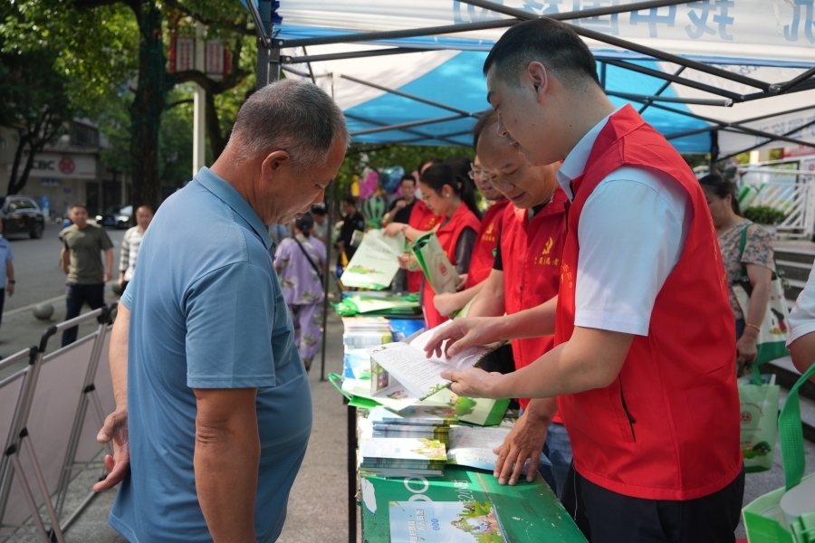 当天,在县城人流密集处,湖南黄桑国家自然保护区管理处、绥宁县人民法院、县政协农业农村人口资源环境委、邵阳市生态环境局绥宁分局、共青团绥宁县委等多部门设置宣传台、摆放宣传展板、悬挂横幅,向过往群众发放主题宣传海报、生态文明宣传册等资料3。工作人员和环保志愿者们热情地为群众答疑解惑,普及生态环保法律法规、节能减排知识以及生活中保护环境的小窍门,展示绥宁县生态文明建设和生态环境保护的成果,呼吁大家从自身做起,积极参与到生态环境保护行动中来 ,形成人人参与、自觉保护生态环境的良好氛围。