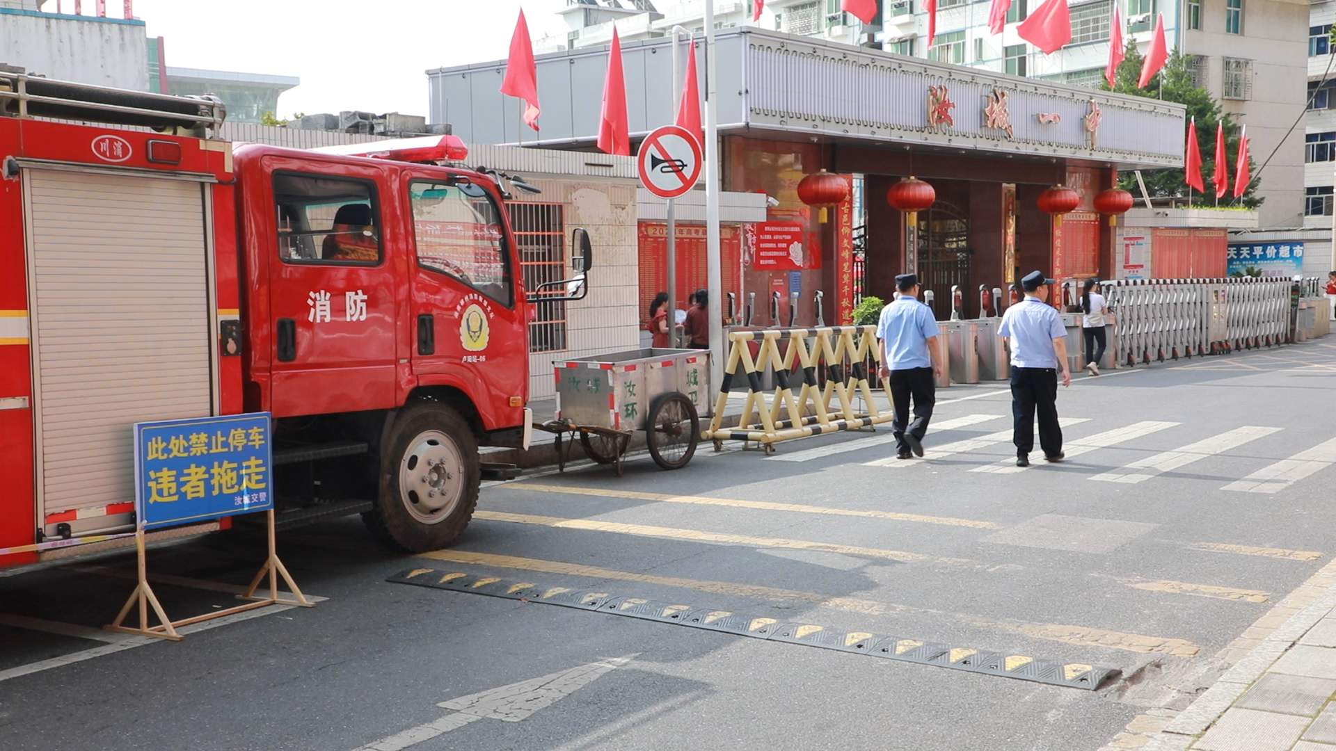 为确保高考顺利进行,汝城县各部门协同筑起“安全网”。在考点周边,县公安、交警、城管等部门积极行动,在各考点入口处的路段实施了交通管制措施,拉起了高考警戒线,并设立了“高考期间,禁止车辆通行”“禁止鸣笛”的标志牌,确保考点周边环境安静有序。消防、电力部门提前排查设备隐患并配备应急发电车。医疗保障团队在考点设立临时医疗点,提供急救与心理疏导,全面防范突发状况。