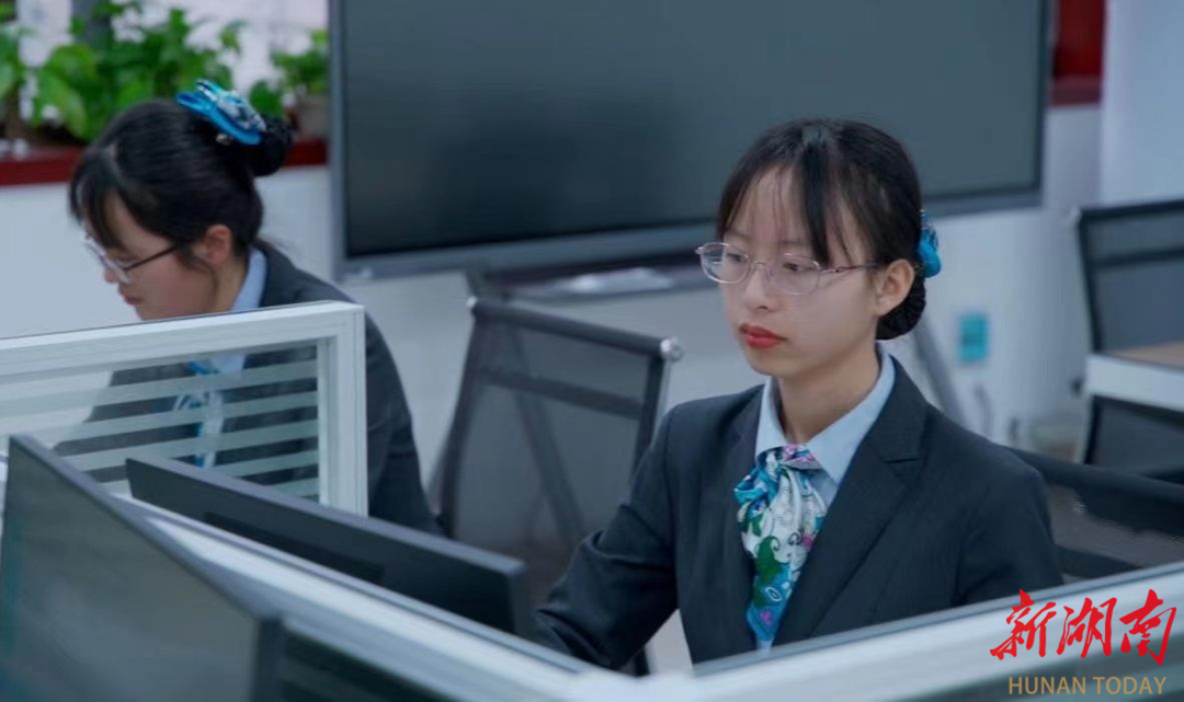 在中国银行实习期间,皮世贸将学校易班运营所学的秀米排版、H5制作及公众号编辑技能,灵活运用到理财产品说明书的可视化标签设计中。每天下班后,她坚持复盘当日工作,总结经验教训。凭借出色表现和扎实能力,她荣获“优秀实习生”称号,并带着这份宝贵经历,在秋招中脱颖而出,拿到中国农业银行的录取通知。当她穿上农行制服站在益阳高新区支行的柜台前,玻璃上倒映的不仅是年轻的脸庞,更是无数个奋斗夜晚里那个追梦的身影。“母校培养的学习与抗压能力,让我快速适应转型。”谈及身份转变,她的感慨道出了成长的核心逻辑。