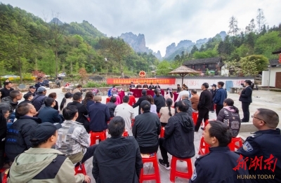武陵源法院干警走进景区宣法讲法,将法律服务延伸到人民群众身边。