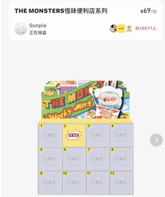 昨天官方泡泡玛特小程序上,盲盒现货仅剩下最后一盒时,人数达到近2万人。