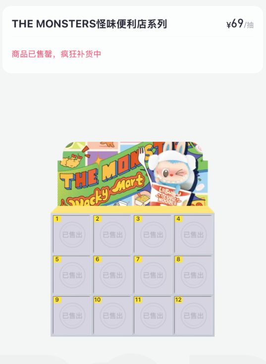 新系列单抽盲盒69元一个,一组12个总价828元。