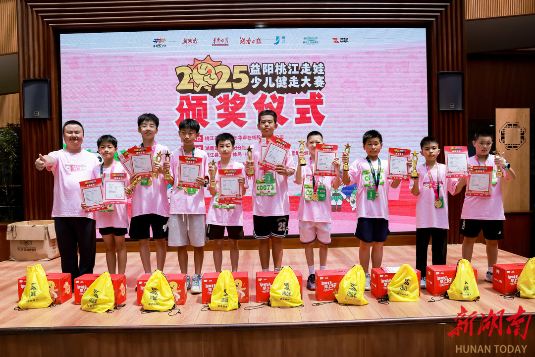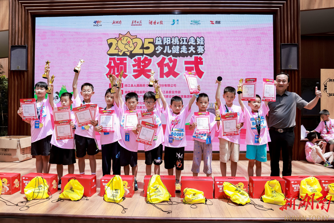 上3图:2025益阳桃江走娃少儿健走大赛颁奖仪式举行,分别为大将组、中将组、少将组前十名颁奖。活动主办方还为大家准备了丰富的奖品。