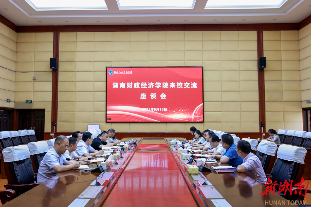 6月13日下午,湖南财政经济学院党委书记易棉阳、副校长潘爱民到湖南人文科技学院考察交流。湖南人文科技学院党委副书记、校长盛明科,党委副书记朱强出席座谈会。