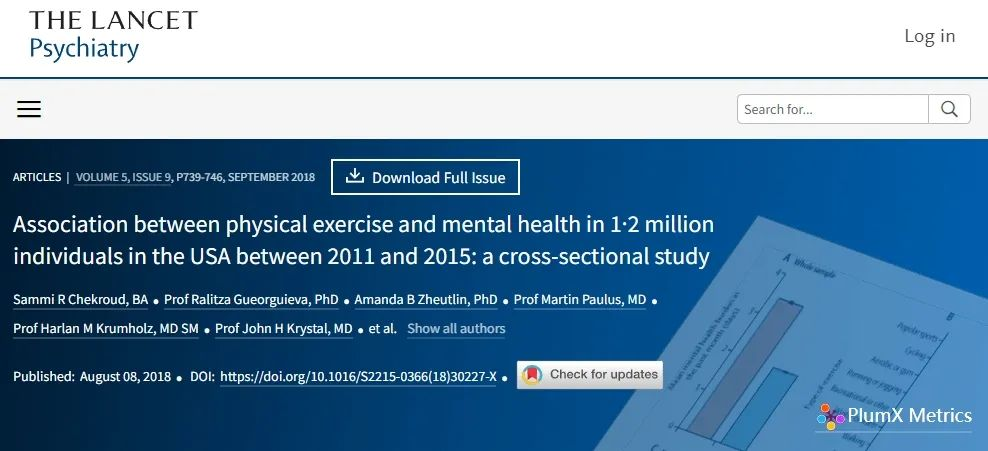 2018年,耶鲁大学团队在《柳叶刀·精神病学》刊发了一项超过120万成年人的研究,通过比较坚持运动的人和不运动的人之间自我报告心理健康状况得出,即使每周仅运动1小时,其缓解抑郁的效果也堪称显著。
