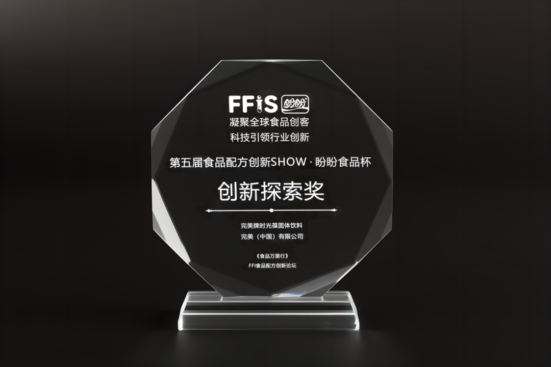 在论坛期间,备受瞩目的第五届食品配方创新SHOW·盼盼食品杯颁奖仪式隆重举行。该奖项评选围绕“创新维度”“技术维度”以及“商业维度”这三大关键维度展开,经过专家评审团严谨细致的评审和层层筛选,完美公司的完美牌时光葆固体饮料脱颖而出,凭借其优异的创新研发技术和过硬的产品品质,荣获“创新探索奖”。