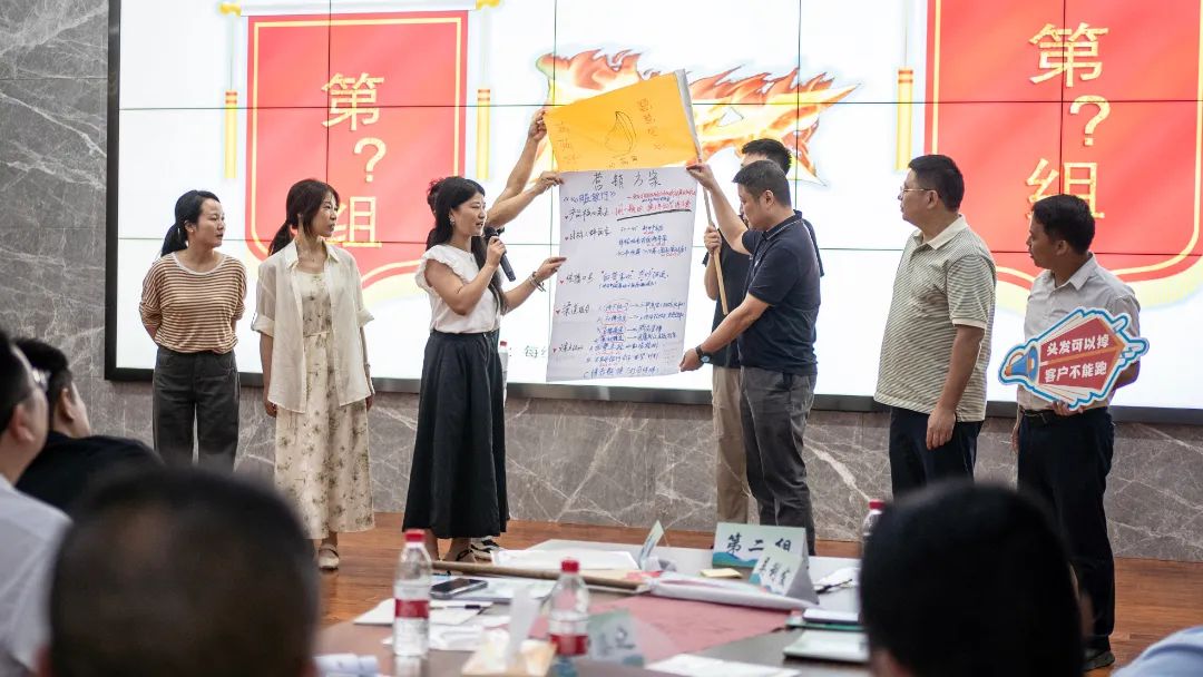 培训设置沉浸式团建实战环节,通过“创业IPO路演挑战赛”“供应链突围赛”等互动项目激活团队战斗力。学员分组抽取米、面、油等产品,完成公司命名、Slogan设计及品牌宣言创作,以创意共创强化团队归属感;在“大米挑黄豆”生产组挑战与蒙眼运输“粮包”任务中,通过模拟产销全流程锤炼流程优化与协同能力;3分钟IPO路演环节,各小组围绕产品定位展开策略PK,由各组相互打分提升营销话术实战水平。培训全程实行积分制管理,第八小组凭借全程优异表现斩获“优秀小组”称号,黄文静、陈翔、黄慧三位学员因学习活跃度高、实战成果突出获评“优秀学员”,以量化激励机制确保培训成效落地。