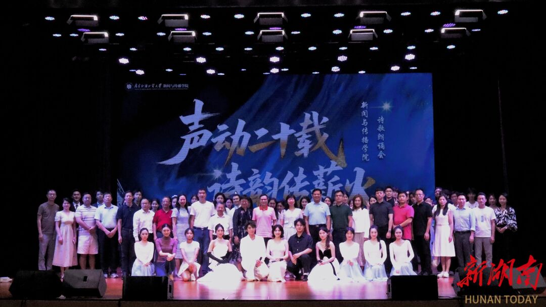 6月21日晚,广东外语外贸大学(以下简称“广外”)大学城校区B8学术报告厅内诗韵流淌,“声动二十载,诗韵传薪火”主题诗歌朗诵会在此举行。500余名师生共聚一堂,以诗为媒,庆贺学校建校60周年、新闻与传播学院建院20周年、国际新闻专业创办28周年及研究生教育10周年。