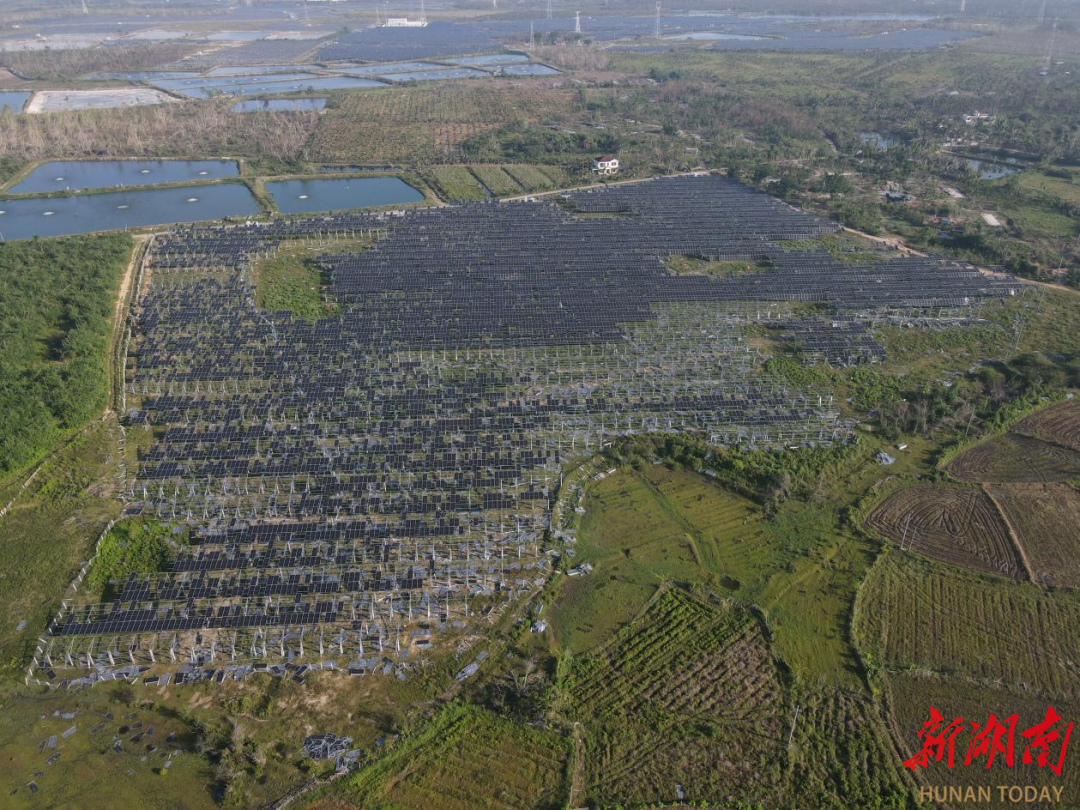 海南文昌光伏发电项目是湖南安装迄今承接的单体规模最大的光伏发电+储能EPC总承包项目,占地面积约1600亩,建设规模100MW,配建25MW/50MWh储能。2024年4月完成首次并网,9月初遭受台风侵袭,9月底恢复2MW并网发电,是“摩羯”台风受灾中心区域首个实现并网发电的光伏电站,12月恢复全容量运行。