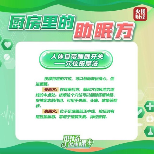此外,人体自带睡眠开关,按摩特定的穴位,可以帮助放松身心,促进睡眠。其中,