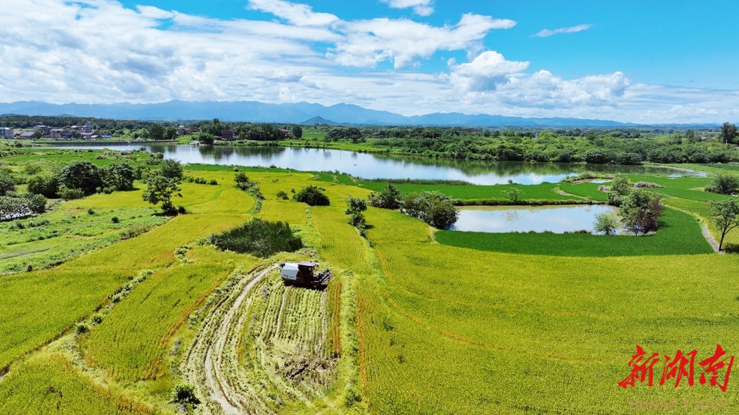 湖南日报·新湖南客户端7月9日讯(通讯员 曹慧璎 王庚娣)时下,永州市冷水滩区23.9万亩早稻迎来丰收,农户抢抓农时以机械化作业为早稻收割按下“加速键”,确保粮食颗粒归仓。