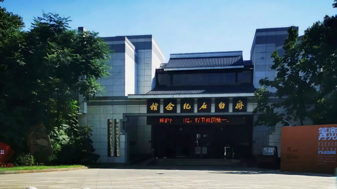 齐白石纪念馆位于湖南省湘潭市雨湖区大湖路2号白石公园内,是一座为纪念杰出的人民艺术家、世界文化名人齐白石为主题的纪念馆。该馆为两层楼仿木砖瓦庭院式建筑群,具典型的湖湘名居风格,馆址用地10000平方米,主体建筑2000平方米。馆内收藏齐白石国画作品和早期雕花作品数十件并收藏了近、当代名家书画作品数百件。