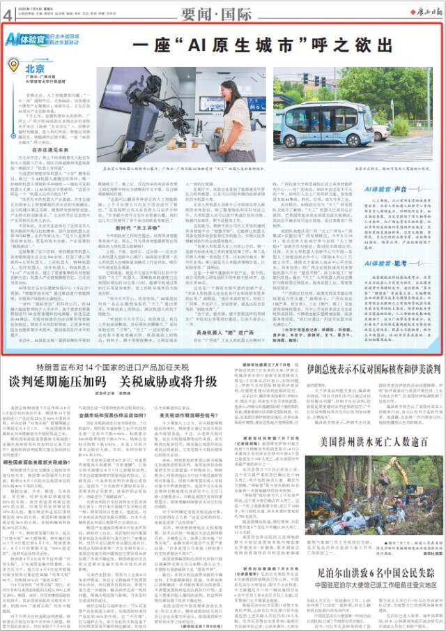 7月上旬,迎着热情似火的骄阳,广西云-广西日报AI体验官来到北京经济技术开发区(简称“北京亦庄”),仿佛穿越时光隧道、进入科幻未来。智能应用接踵而至,智能硬件应接不暇,一座“AI原生城市”呼之欲出。
