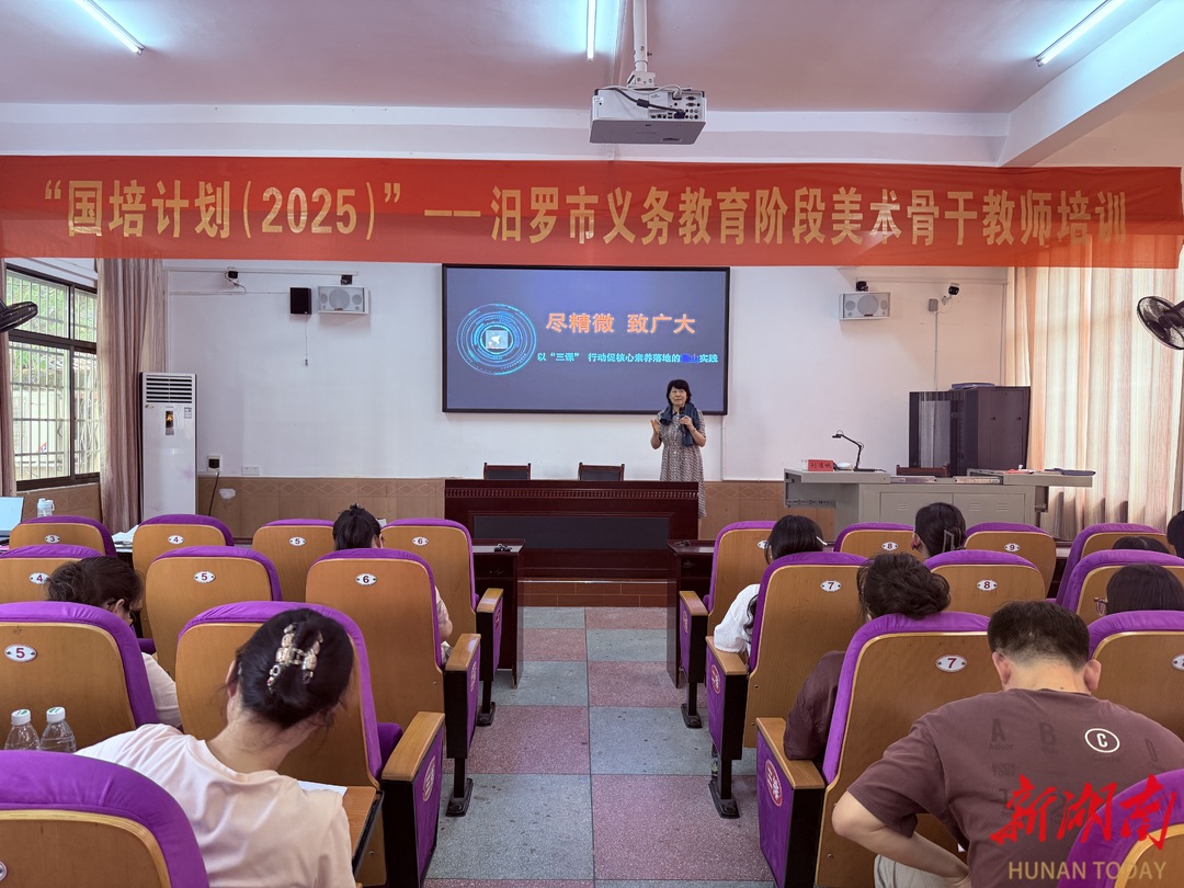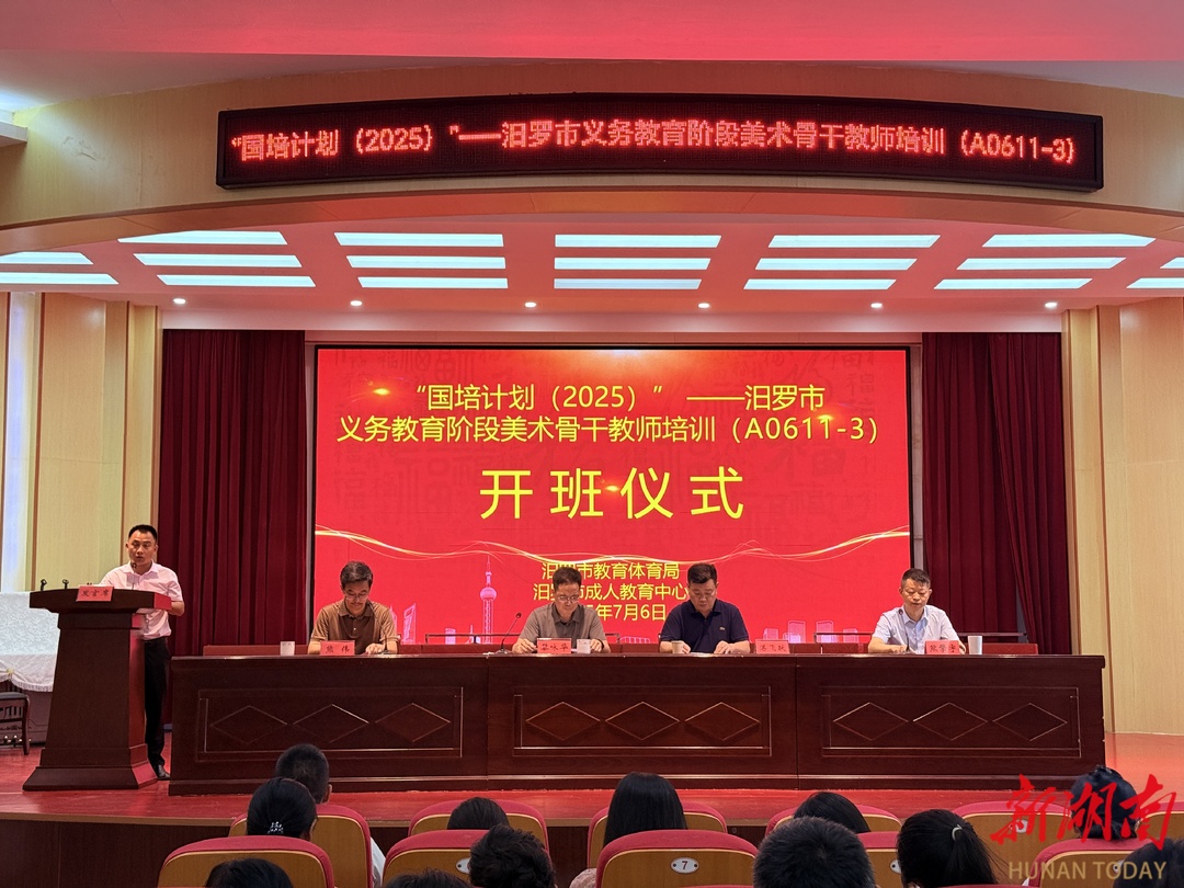 湖南日报·新湖南客户端7月10日讯(记者 周磊 通讯员 湛丁一)7月6日,汨罗市“国培计划(2025)”义务教育阶段美术教师培训在汨罗市成人教育中心正式启动。60名美术骨干教师齐聚一堂,开启为期9天的“核心素养导向的美术教学实践能力提升”主题研修,通过“理论+实践+跟岗”三维模式,推动美术教育深度融入汨罗地域文化基因,为区域美育高质量发展注入新动能。