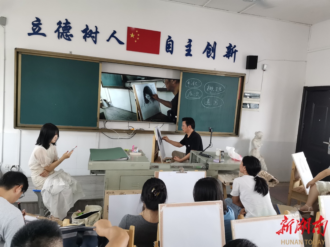 培训聚焦文化传承、技术赋能、成果转化等方面,将汨罗龙舟文化、剪纸艺术等地方资源转化为教学素材,聘请湖南省油画学会理事陈晓声现场进行素描速写示范教学。