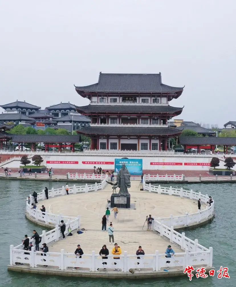 司马楼前刘禹锡雕塑(常德日报智能媒资库 刘颂 王木子 摄)
