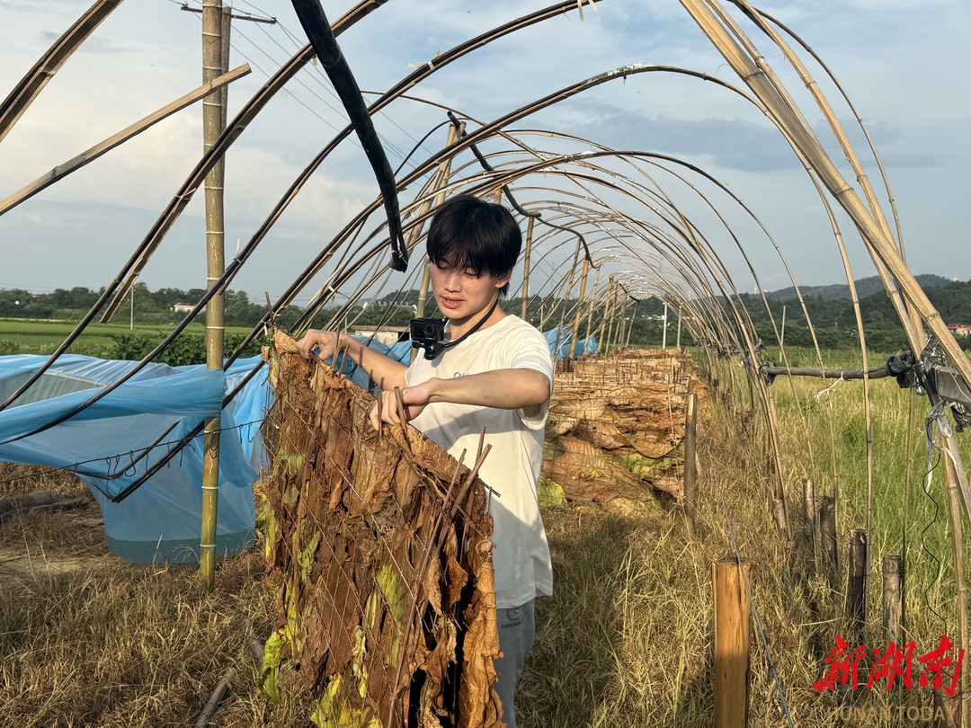访谈结束后,得知附近烟农正抢晴好天气作业,队员们主动下田参与烟叶采摘与晾晒。在烟农指导下,实践队成员学习了采摘技巧并协助完成后续工序。烈日下的亲身体验让队员们深刻感受到传统农业的艰辛。“这让我们更加理解了村干部和农户对减轻劳动强度、保证品质稳定的智能化方案的迫切需求。”队员钟秉益感叹道。