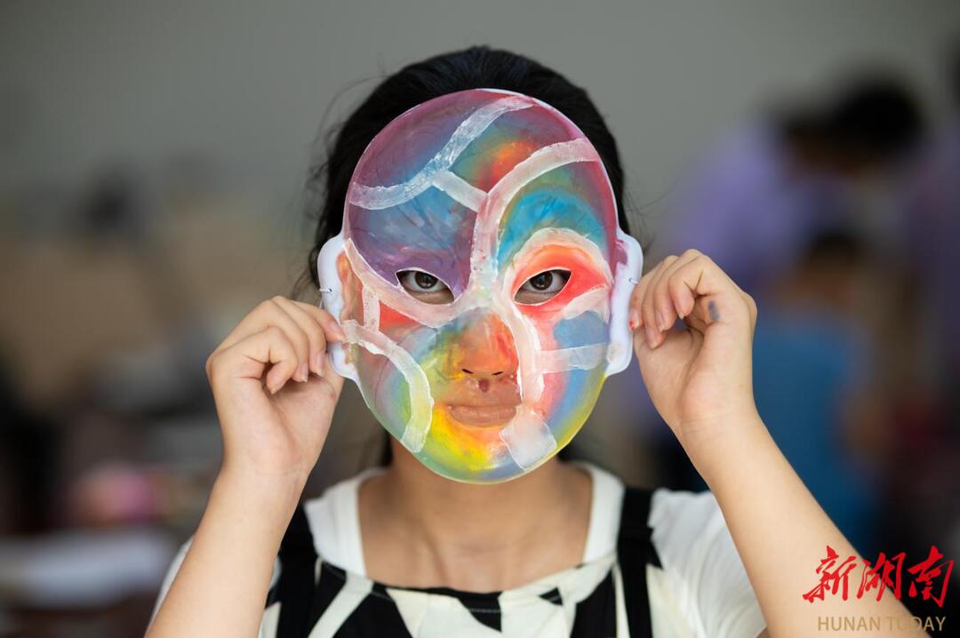 夏令营的孩子展示自己制作的非遗脸谱