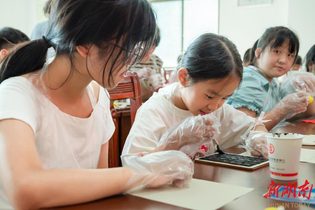 夏令营的孩子们体验活字印刷术