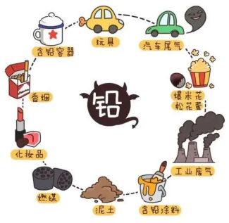工业与交通污染:工业废气、含铅废物焚烧、汽车尾气。